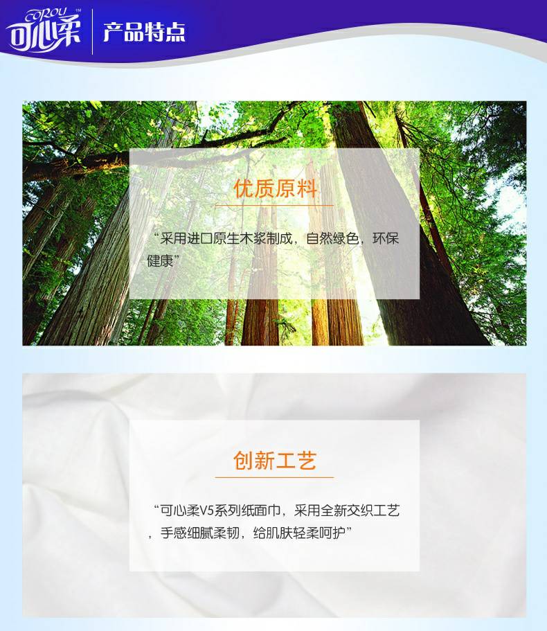 可心柔 V5系列CoRou云柔系列白色木浆40抽